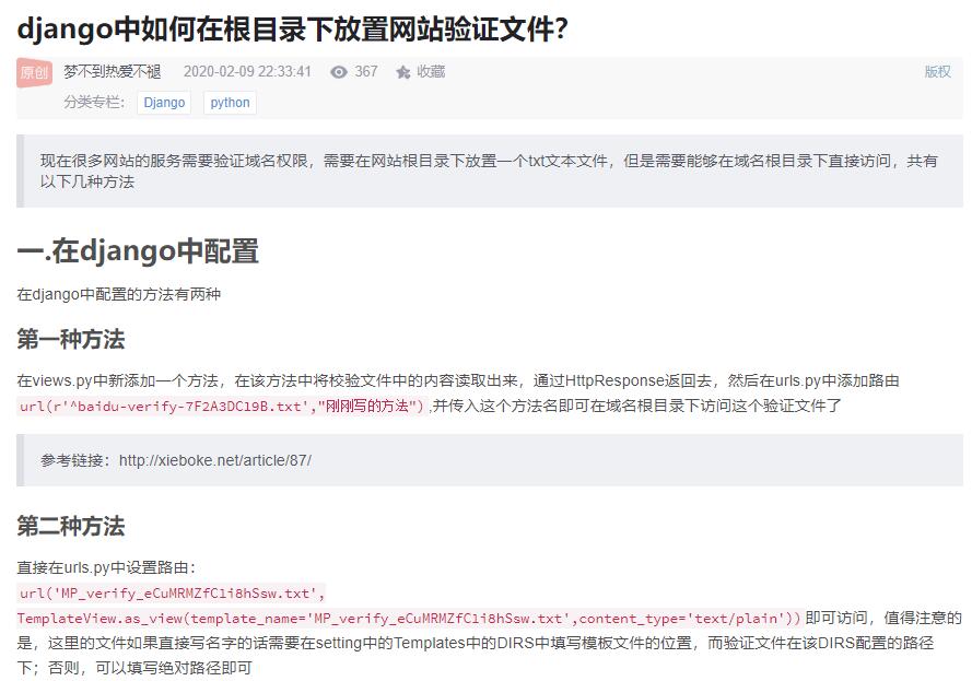 而网站使用django,网址都被django接管,无法直接访问,也就无法验证通过。